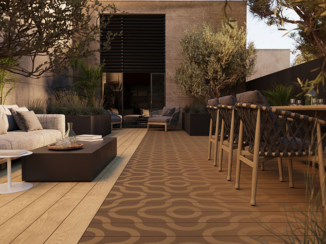 Vytvořte si prostor s jedinečnými zónovými aplikacemi prken Modello. Použijte styly Linear nebo Contour k vymezení samostatných oblastí pro stolování, odpočinek nebo zábavu, aniž byste narušili celkovou estetiku designu. Díky precizně navrženým vzorům a možnostem přizpůsobení přináší Modello zónování, které je nejen praktické, ale i vizuálně působivé.